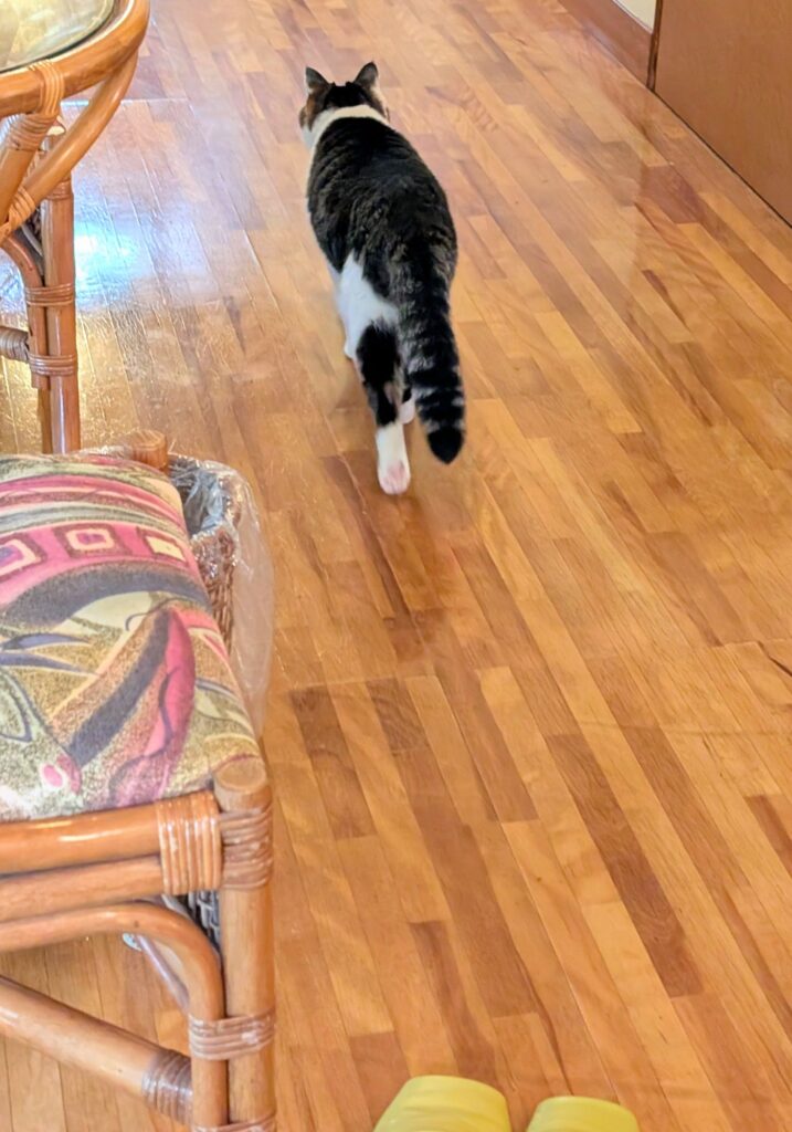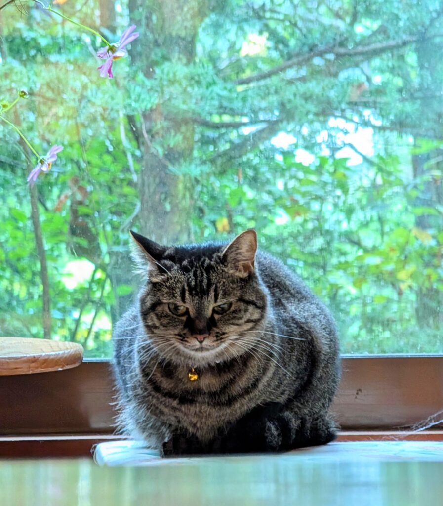 時間を気にする必要もなく、だらだらと湯につかって朝を過ごした。そして風呂から上がったところ、前回にも話したネコチャンが朝の挨拶をしに来てくれた。わけではないかも…