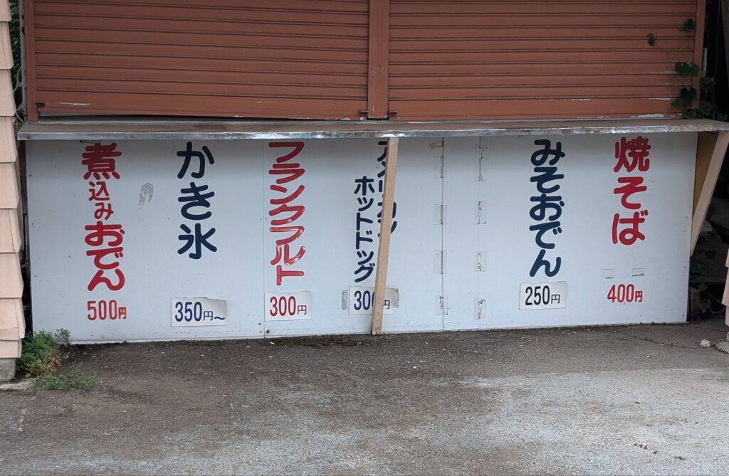 滞在時間数分の後、そそくさと駐車場に戻る道中でお土産や五平餅なんかを購入した。