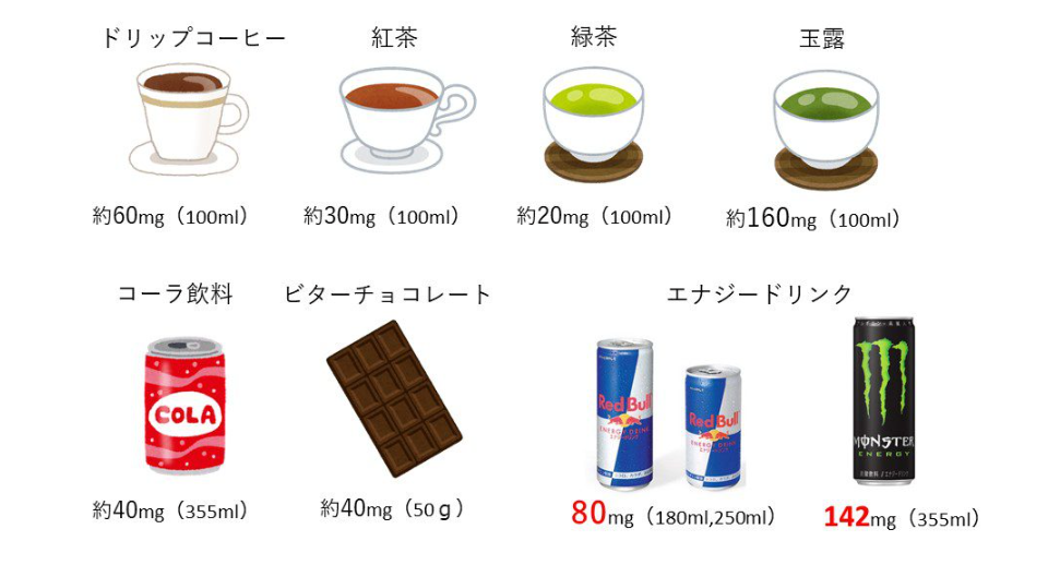 その量きっかり400mg。分かりづらいので以下に代表的な食品・飲料のカフェイン含有量を記しておく。