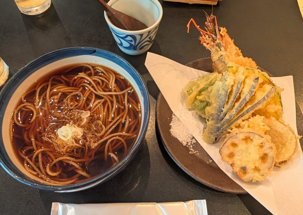 旅行ではケチらないという信念を持っている俺は贅沢にも天ぷら蕎麦を注文し、見事勝利を収めた。