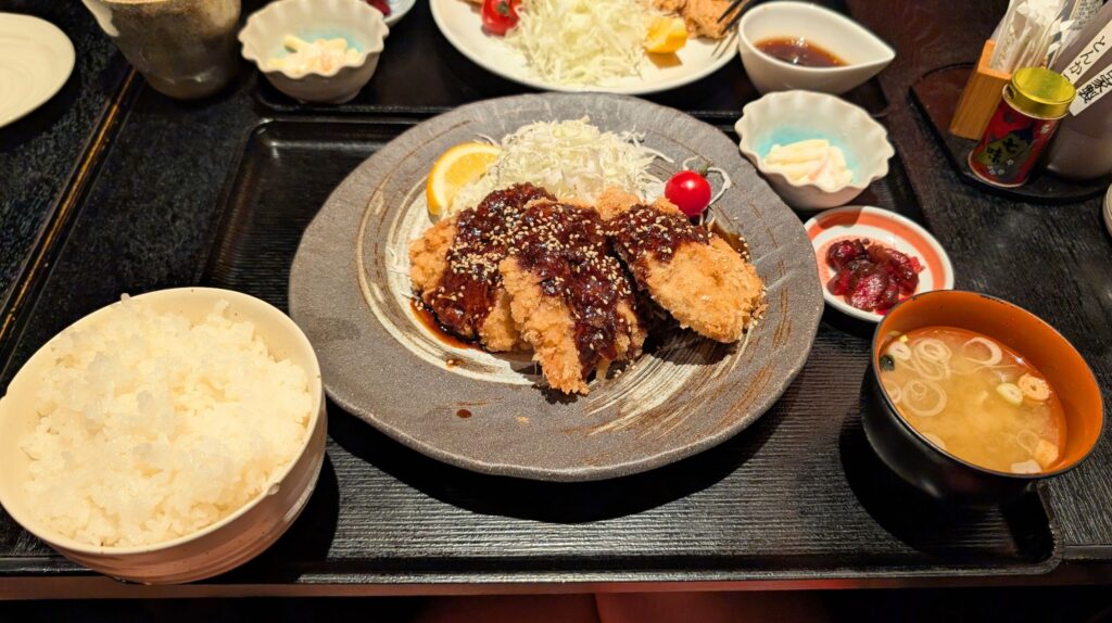 俺は味噌ひれかつ定食、Aは鶏山賊焼き定食を注文し、二人してご飯大盛りで平らげた。