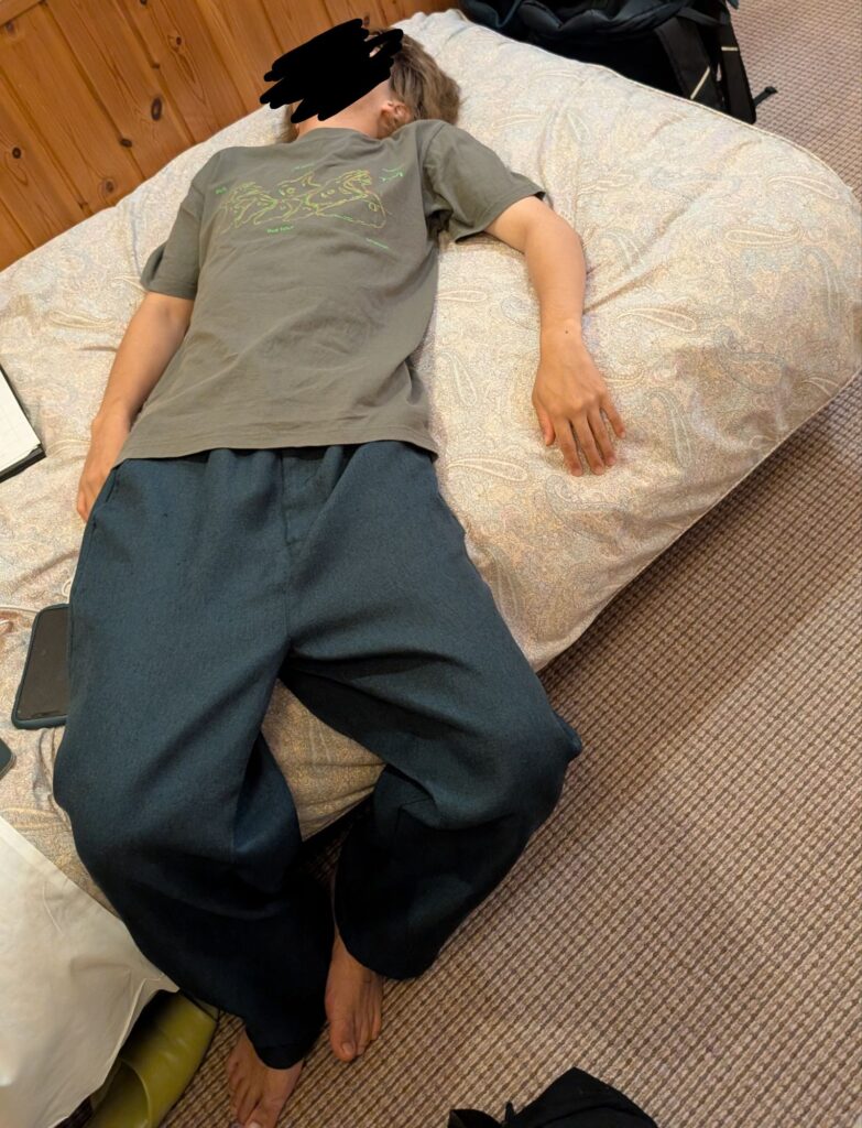 帰宿後、ベッドの上でスマホをいじっていた俺だったが、何者かの寝息が聴こえてくることに気がついた。