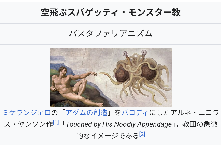 かくいう俺は「空飛ぶスパゲッティモンスター教」の信者であるため、キリスト教会での祈りや献金は慎んだ。