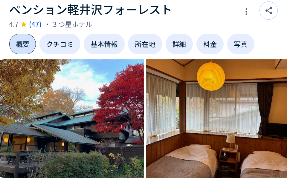 野鳥のいない野鳥の森をあとにした我々は、ぼちぼち宿に向かうことにした。今回宿泊した宿は「ペンション 軽井沢フォーレスト」
