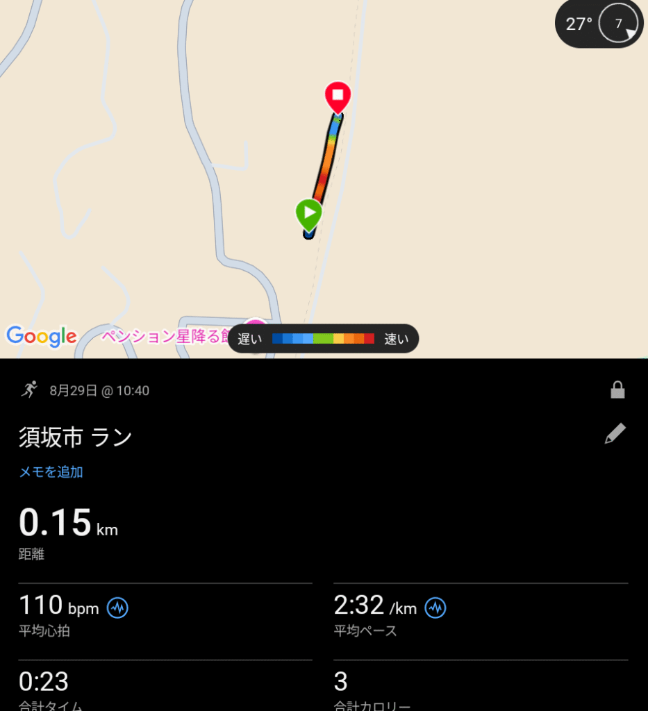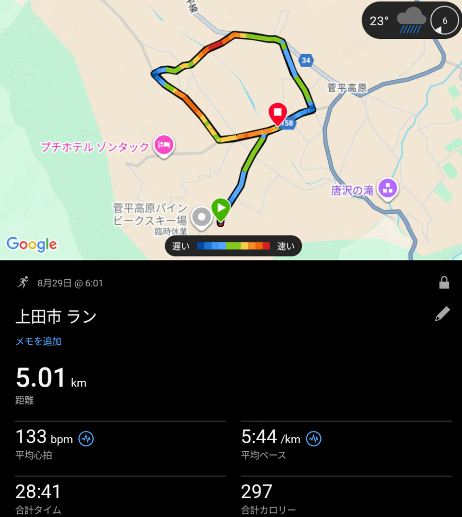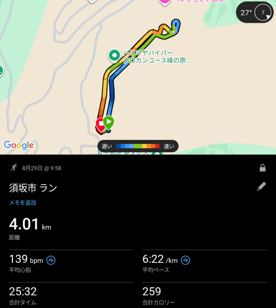 画像右上を見てもわかる通り、相も変わらず非常に過ごしやすい気候で走ることができている。最近では、ようやく東京でもこの種の涼しさになってきた。